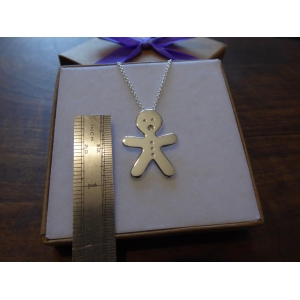 A little handmade gingerbread man pendant, hand cut using argentium silver.