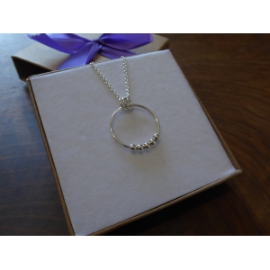 It is handmade from 1.2mm thick argentium silver with five argentium silver beads that move freely along the wire.