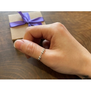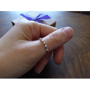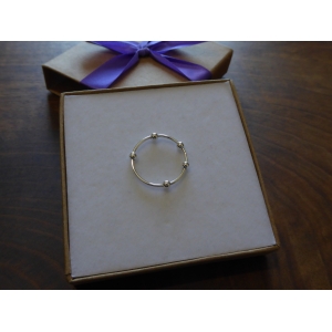 A handmade sterling fidget ring, it is handmade using 1.2mm thick round argentium silver wire, and has five argentium silver beads attached which move freely along the ring.