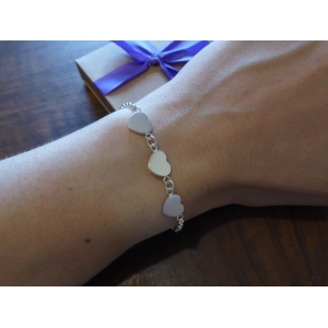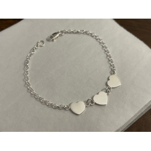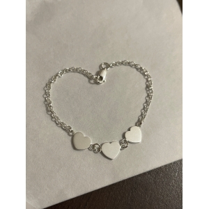 A silver heart bracelet. Each heart is hand cut from 1.2mm thick sterling silver, they’re approximately 1cm wide