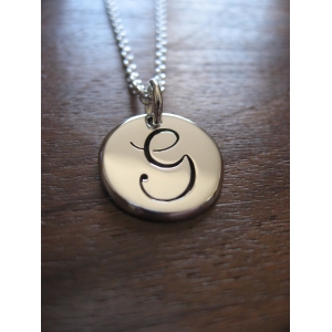 A handmade silver initial charm, it is approximately 1.2mm thick and 1.5cm wide, the initial of your choice is hand cut into the metal, you will see it reversed on the back, and if you hold it up to the light you will see through it!