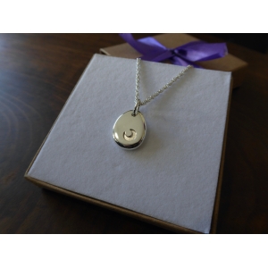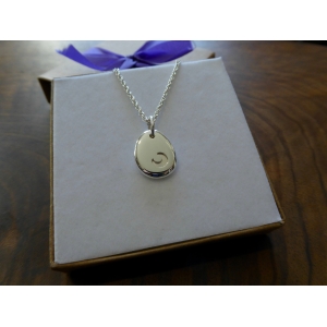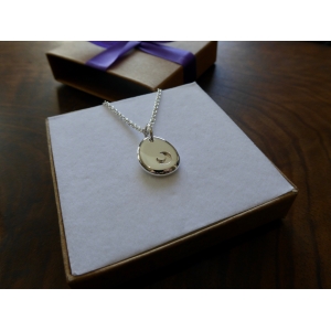 A beautiful silver pebble pendant, handmade from Argentium silver, it is approximately 3mm thick and has a little hand cut moon detail.