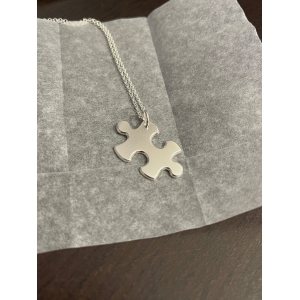 A silver puzzle necklace handcut from argentium silver that is 1.2mm thick, it is approximately 2.5cm tall