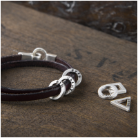 The wrap around leather strap bracelet can have charms of your choosing added to it. It comes with three charms, choose from either circle, square or triangle and add a message up to 6 letters on each charm.
