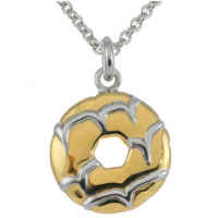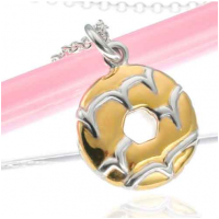 Gorgeous little silver and gold vermeil party ring biscuit necklace. These biscuits were the best thing about childhood birthday parties! The party ring was hand carved from wax, then cast in solid sterling silver and plated with 22ct gold.