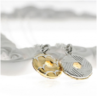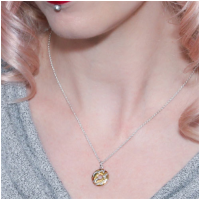 The biscuit measures 15mm in diameter and it is strung on a choice of adjustable necklaces, either a standard 16″ to 18″ length chain, or a long 22″ to 24″ length chain.