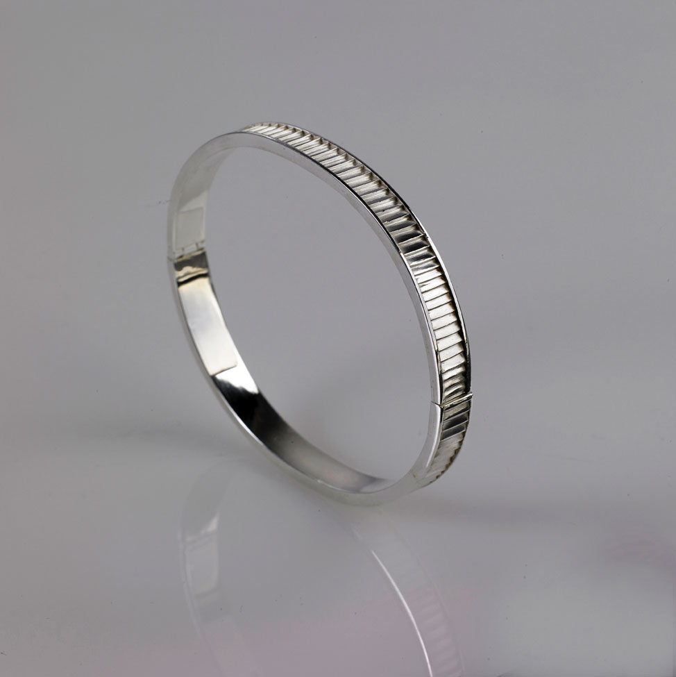 Britannia silver Bangle with open and close catch.