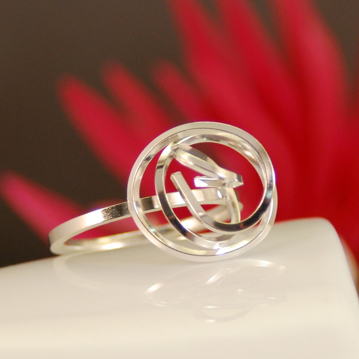 Sterling silver ring with a "Tangle" design. The shank is made from 2mm wide silver with the tangle on the top being made from 1mm square silver wire to match the rest of the designs in this range.