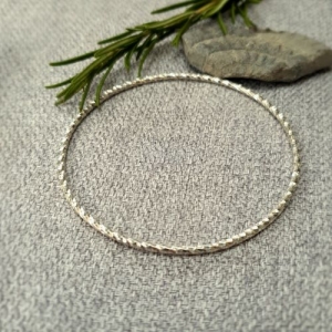 A classic solid sterling silver skinny bangle elevated by its beautiful diamond cut pattern that catches the light and twinkles.