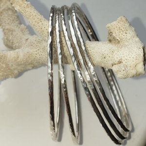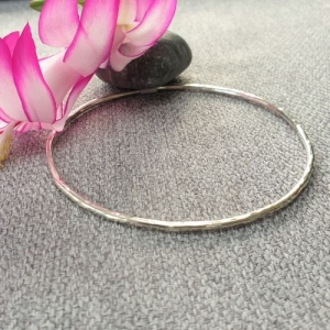 A stylish sterling silver bangle that is hand forged from 2mm round solid sterling. The bangle has been planished to give a hammered pattern and polished to give a beautiful shiny finish.