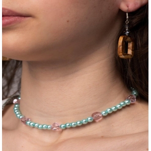 Handmade with 6mm round bright blue shell pearls and 8 - 9mm twist pink glass beads. Finished with a buttoned clasp, this necklace gives a classy yet sophisticated look.