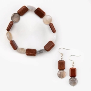 Model also wearing the matching Brown Goldstone and Agate Bracelet sold separately.
