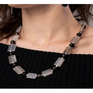 Unleash your inner dragon with this gorgeous semi precious Faceted Dragon Vein Agate and Quartz Necklace.