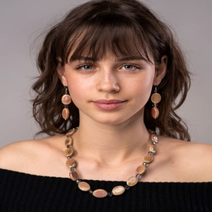 The pink tan colour and 8mm aura glass bead adds a touch of warmth and femininity, making these earrings a versatile choice for various occasions.