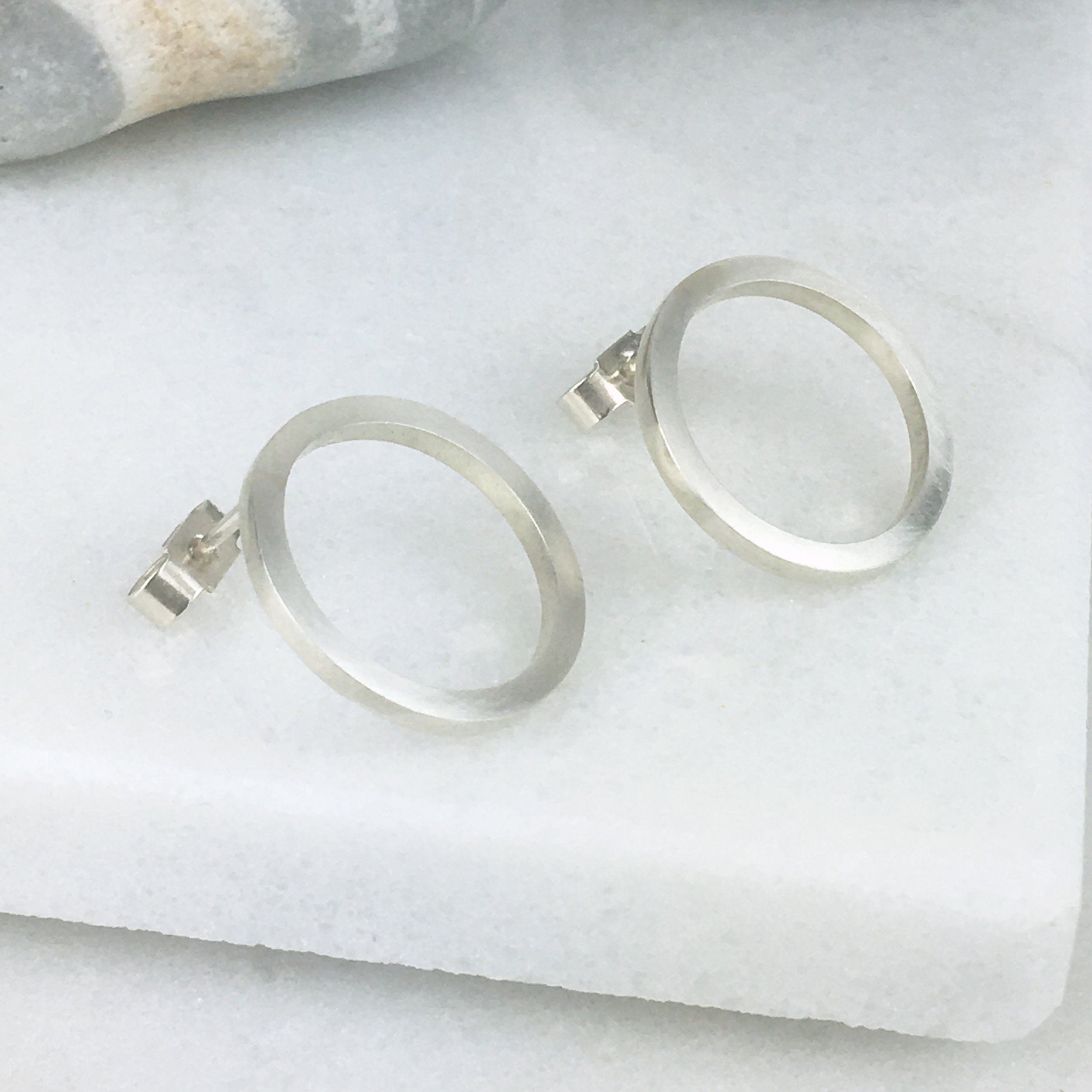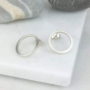 Simple open circle stud earrings handmade in sterling silver with a matte finish, the simplicity of the geometric design gives these earrings a contemporary look and makes them a great choice for everyday wear.