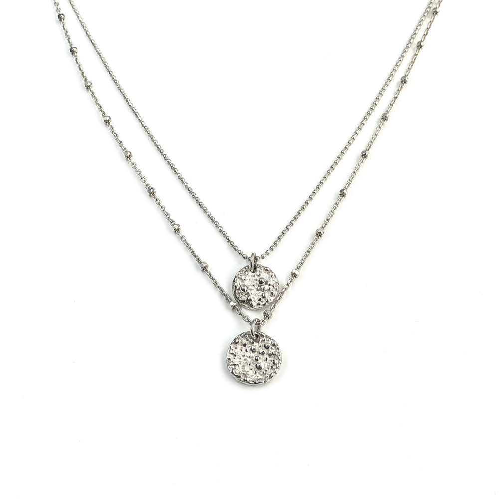 2 layer necklace. Each disc is enveloped in granulation creating a luxuriously tactile texture that beautifully catches the light.