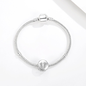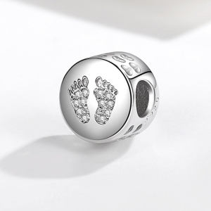 - Shape: Round with crystal baby feet design