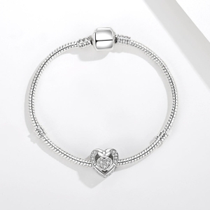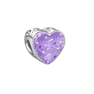 Sterling silver heart ashes charm bead with crown design and tiny sparkling crystals.