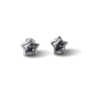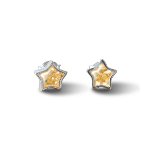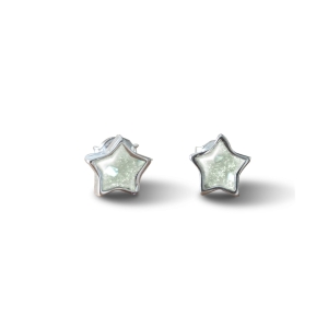 Cute little dainty star earrings to hold memorial ashes. These little studs are expertly crafted to hold either ashes, hair or pet fur permanently inside. Each little star earring measures approximately 8mm.