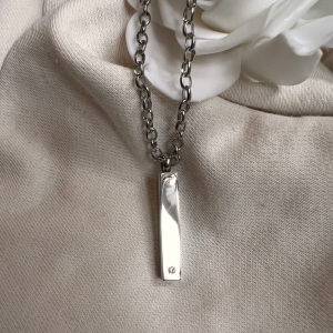 Soundwave engraved 3D bar self fill ashes urn necklace. Made from quality polished stainless steel. This beautiful unique urn necklace has a tiny sparkling crystal on the front side and can be engraved with a soundwave capturing your loved ones voice, or a heartbeat.