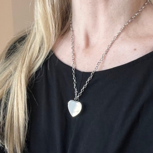 Soundwave engraved heart shaped self fill ashes urn necklace. Made from quality polished stainless steel. This beautiful unique urn necklace can be engraved with a soundwave capturing your loved ones voice, or a heartbeat.