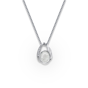 This pretty design flutter memorial necklace has a dainty outer hollow wing design to one side and sparkling CZ crystals on the other outer section. An oval drop measures 10mm x 8mm where we will set the ashes or hair in a colour of your choice.