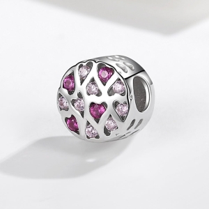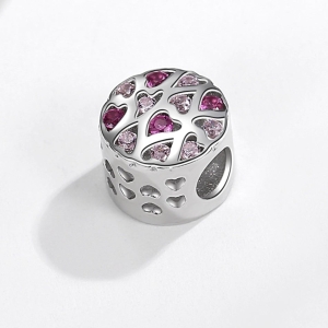 A beautiful pink hearts ashes charm bead designed with 4 cerise tiny pink crystal hearts and 8 baby pink tiny crystal hearts. The reverse side of this charm bead is where we will place the inclusions of your loved one or pet. The charm is compatible with all branded charm bracelets including Pandora.