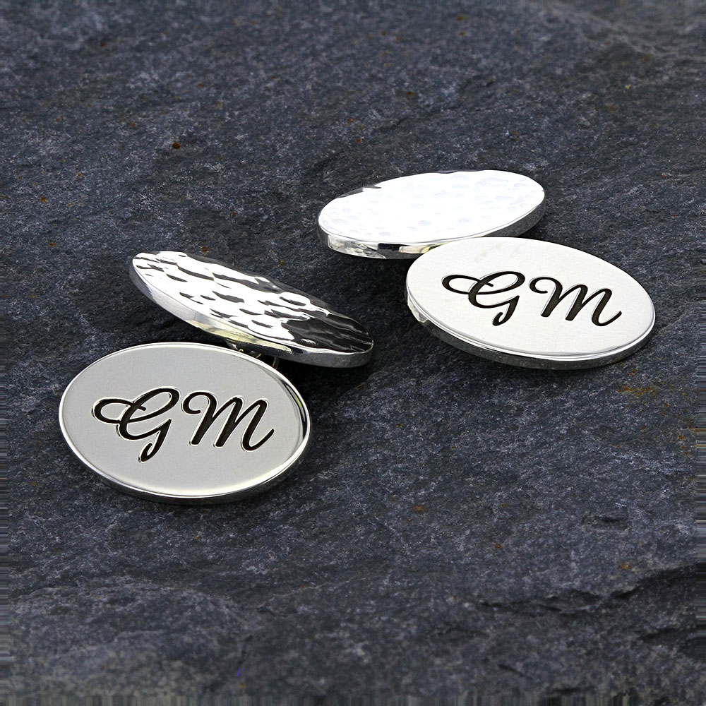 Dome head Hallmarked Sterling Silver Cufflinks - One side engraved with up to 3 initials of your choice and the other side with a hammered texture.